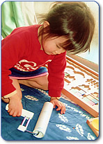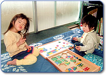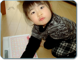 頑張り屋さんの里菜ちゃんのお気に入りの教具は、シェイパー。ここでも、粘り強さを発揮しているようです。お手本を見ながらロボットを作ったあと、それだけでは終わらず、今度は自分で考えた大きなオリジナルのロボットを作り始めるそうです。 何でも自分でやらないと気がすまないようですね!また、里菜ちゃんは「かるたとり」で遊んでからじゃないと寝ないそうで、毎日かかさず家族そろって「かるたとり」をしているようです。ボ〜っと読んでいて文章を少しでも間違えると、指摘されるそうです。「かるたとり」の後は、みんなぐっすりと眠れそうですね。 |